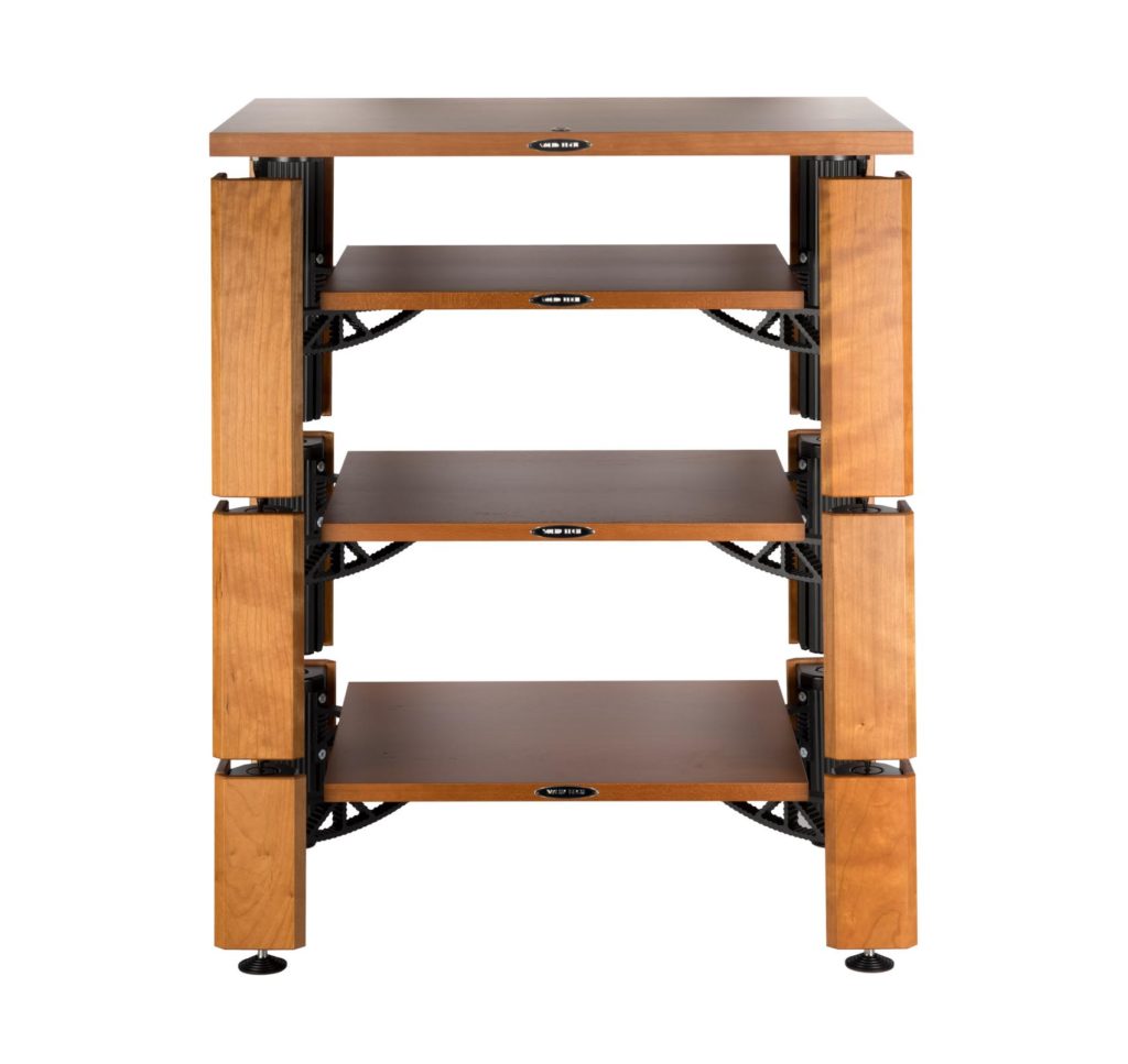 To enhance the Hybrid rack even more and to satisfy all tastes we are now introducing veneered shelves in Cherry, Oak and Walnut. The veneer is of the same high quality as in the Radius rack system. With these shelves the console is attached from the bottom meaning that there will be no visible screw
