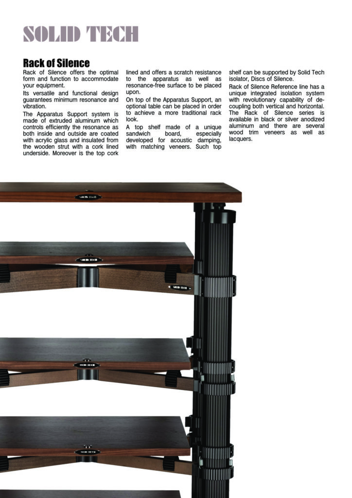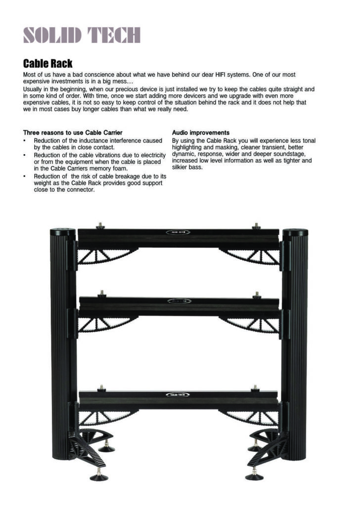 Hybrid stacked and arranged as a conventional rack Hybrid Wood here in black oak and Hybrid Isolation shelf-kit HD in concrete. Top shelf in black oak with Hybrid wood isolation system. Isolation is very important as it is no doubt it will enhance the sound quality extensively. Isolation Shelves will effectively damp the equipment both